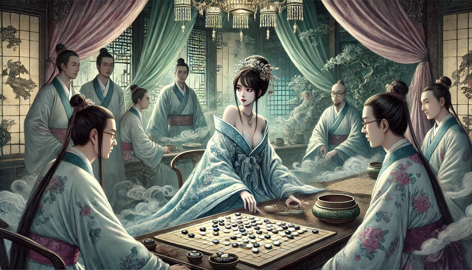 鳳仙は、かつて緑青館で絶大な人気を誇った妓女でした。彼女の美貌と知性は他の妓女とは一線を画し、囲碁や将棋の名手としても知られていました。特に彼女の囲碁の腕前は評判を呼び、彼女と一局交えるために遠方から訪れる客も少なくありませんでした。また、彼女が話す言葉や所作は洗練されており、単なる美しさ以上の魅力を持っていました。ある夜、名のある貴族が彼女のもとを訪れ、彼女との一晩を過ごすために莫大な金額を支払ったという逸話も残されています。そのような伝説が生まれるほど、彼女は絶大な影響力を持つ存在だったのです。彼女は囲碁や将棋の名手であり、その知性と美しさで多くの客を魅了しました。緑青館の花形として活躍した彼女の人生は、華やかさの裏に深い悲しみと運命の波乱が隠されています。彼女はただの美貌を持つ妓女ではなく、知的で冷静な判断力を持ち、客たちの心を惹きつける魅力を備えていました。そのため、彼女を指名する客は後を絶たず、緑青館の財政を支える存在でもありました。しかし、彼女の立場は決して安定したものではなく、少しの波乱が彼女の運命を大きく狂わせることとなったのです。