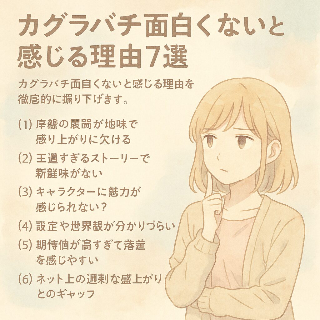 この記事では、カグラバチ面白くないと感じた理由や、本当はどこが面白いのか、リアルな口コミや評判、今後の可能性まで、徹底的に深掘りします。