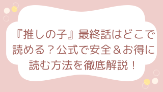 マンガ『推しの子』最終話はどこで読める?公式で安全&お得に読む方法を徹底解説! 『推しの子』最終話、ついに完結!「どこで読めるの?」「最終回って本当に終わったの?」――そんな声がSNSでも止まりませんよね。2024年11月、約4年半にわたる連載に幕を下ろした『推しの子』。最終話では、アクアとルビー、そしてアイの“真実の... 2025.11.01マンガ
