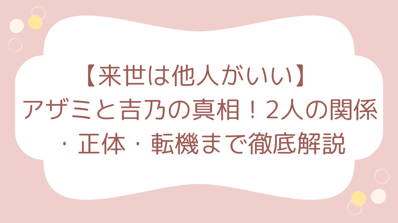 来世は他人がいいで描かれる吉乃と霧島の複雑な関係とキスの真意